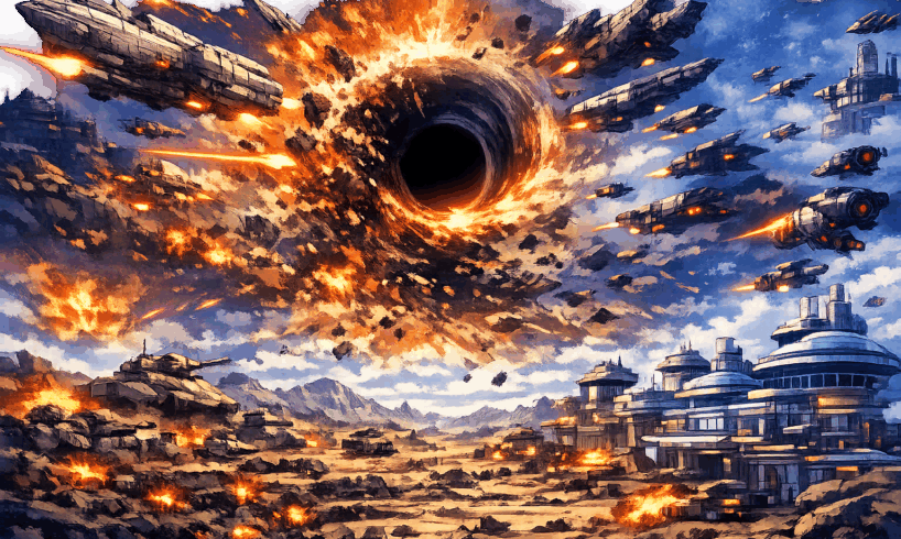 O conflito, no entanto, não terminou por exaustão convencional, mas sim por um evento de proporções tão aterrorizantes que forçou até os mais endurecidos generais a repensarem suas ambições. Numa noite sem testemunhas, Vórmez Prime — o planeta-coração do Império Vórmez, berço da família imperial e centro nevrálgico de seu comando — simplesmente deixou de existir. Juntamente com toda a corte imperial, milhões de súditos e o alto comando militar, o mundo foi apagado da realidade, dando lugar a um buraco negro silencioso e faminto que tudo devorou, inclusive a memória do que ali existira.